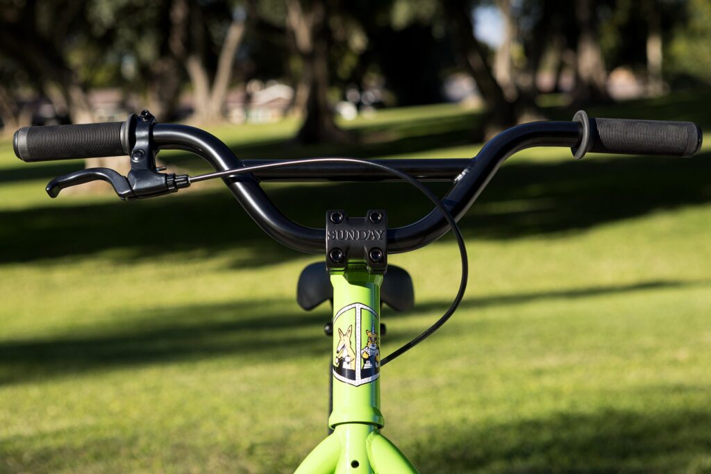 A note on sizing. The Macaroni is sized a little differently from traditional kids’ BMX bikes. Check out our size guide, but I’ve found that if your rider might fit a 16″ or 18″ BMX bike, they likely will fit our Macaroni 20″. A rider who fits a 20″ BMX bike can often fit comfortably on our Macaroni 24″.
